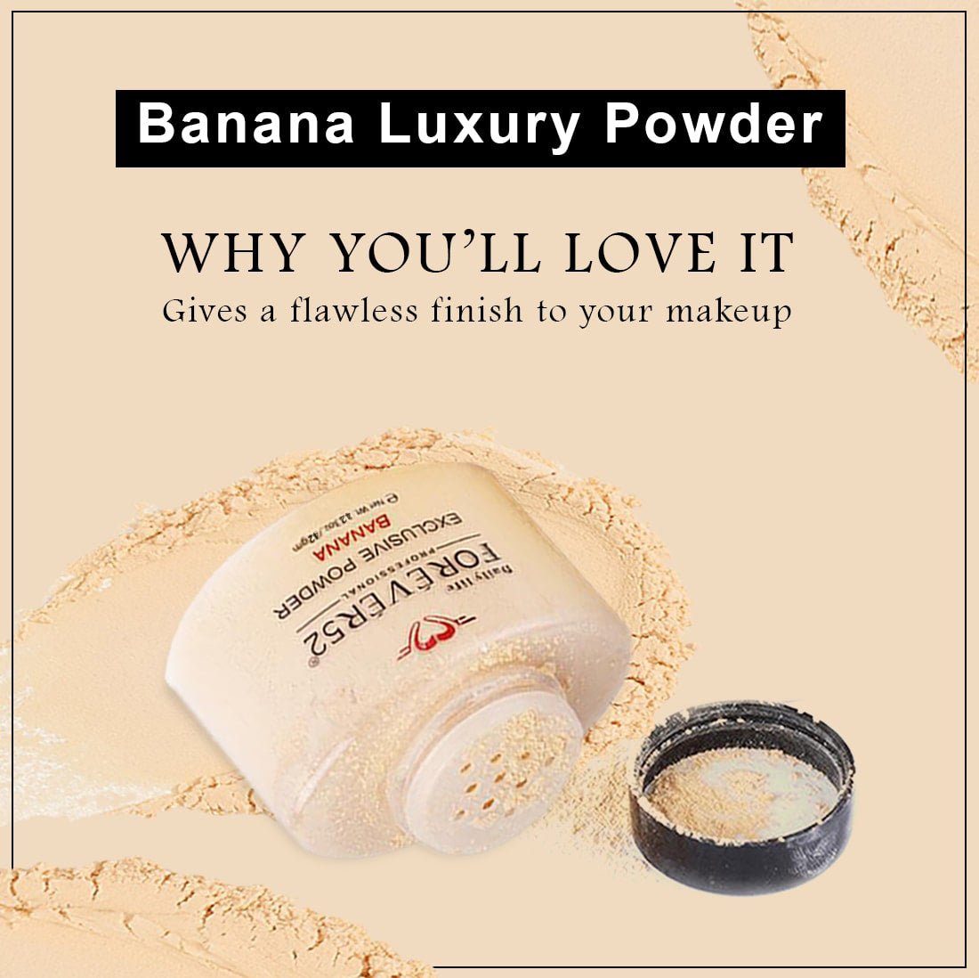 Daily Life Forever52 Exclusive Powder is mattifying banana powder. With a hint of color set for your foundation and to reduce shine whilst correcting redness and pink undertones. With a sieve to prevent clumping and ensure it is easy to apply. It absorbs oil, enhances your skin tone, giving you a gorgeous glow. Daily Life Forever52 Exclusive Powder highlights, color corrects and sets makeup giving you a flawless and matte base! Designed to be used in your normal contouring regime, or even just on its own, this powder can be applied under your eyes, on your forehead, the bridge of your nose and your chin.